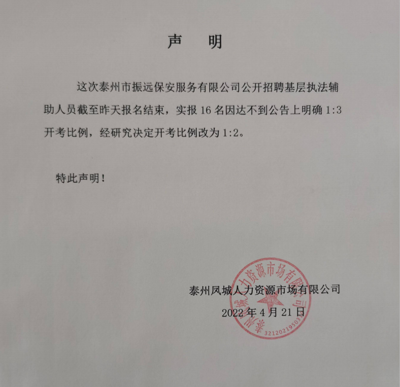 振遠保安有限公司公開招聘基層執法輔助人員公告